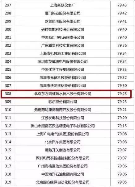 東方雨虹進入中國企業專利500強榜單