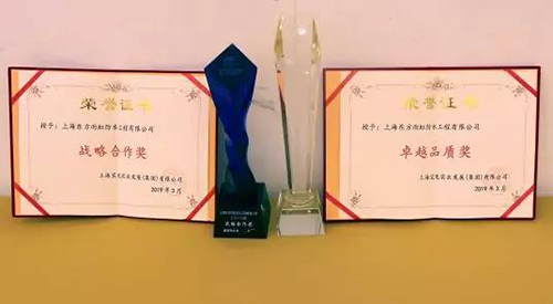 3月31日,寶龍地產(chǎn)2019年度戰(zhàn)略供方大會在上海寶龍艾美酒店召開。東方雨虹憑借卓越的品質(zhì)及高效的服務(wù)榮獲“卓越品質(zhì)獎”“戰(zhàn)略合作獎”。