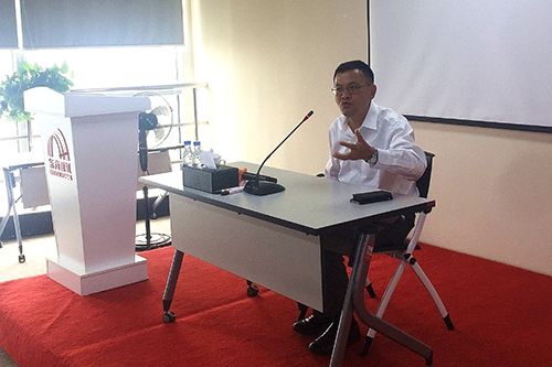 東方雨虹集團董事長李衛國向學員們分享了《企業文化之共啟愿景》,他要求管理人員高度理解、認同東方雨虹基本法,長期持續的艱苦奮斗,為中華民族的偉大復興貢獻自己的力量。