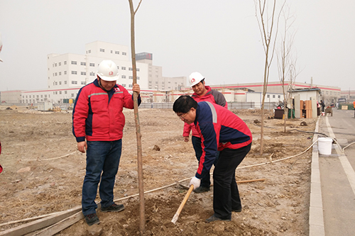 3月12日,是一年一度的植樹節(jié),唐山東方雨虹舉辦了以“樹立文明生態(tài)理念,推進園林工廠建設”為主題的植樹節(jié)活動。下午13:30由生產(chǎn)基地領導及職能人員30余人在基地的空地植樹40棵,以實際行動踐行東方雨虹“綠色工廠”的經(jīng)營理念,為唐山生產(chǎn)基地再添新綠。