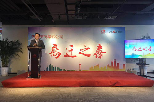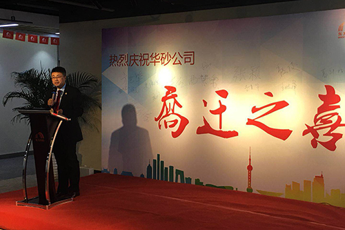 接著,由華砂公司董事長方世畢先生致辭,他感謝了前來祝賀的嘉賓,總結了華砂公司過去的工作并對接下來的發(fā)展方向做出重要指示,同時表明華砂總部搬遷到花橋是一個新的起點,華砂公司因砂而生、因砂而美,也必將因砂而走向世界。