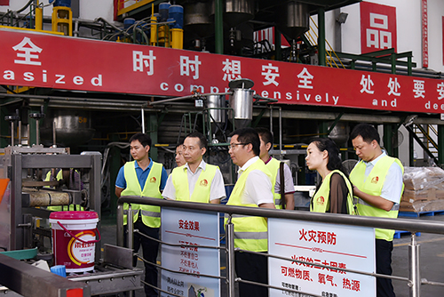 向鋒向考察團(tuán)匯報(bào)了東方雨虹整體經(jīng)營(yíng)情況、生產(chǎn)規(guī)模以及企業(yè)優(yōu)勢(shì)等,并陪同考察團(tuán)參觀水性涂料車間、高分子車間、瀝青卷材車間和外加劑車間,同時(shí)現(xiàn)場(chǎng)介紹各車間產(chǎn)品的生產(chǎn)工藝、產(chǎn)品優(yōu)勢(shì)及重大工程應(yīng)用情況。 熊瑞光表示,東方雨虹的工藝裝備先進(jìn),廠區(qū)環(huán)境綠色環(huán)保,生產(chǎn)規(guī)模具有優(yōu)勢(shì),希望東方雨虹到廣西投資建廠,共謀發(fā)展。