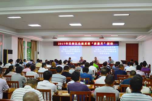 9月13日,廣州市花都區住建系統舉行“質量月”現場觀摩活動暨工程質量常見問題防治經驗交流會。區建設工程質量監督站站長黃漢華、副站長黃致通,區屬住建局、質監站,總包單位,施工單位,監理單位等工作人員近150人參會。東方雨虹總工程師周子鵠作為優秀企業技術專家代表應邀出席。