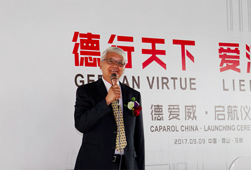 熊俊先生開場并致辭,東風已來,德愛威人自當揚帆破浪,一起為共同的新事業而奮斗。李國華先生代表股東表達對德愛威(中國)起航儀式的祝福。11點18分,在場領導及嘉賓共同為德愛威品牌標識注入七彩顏色,表達對公司發展前景的美好祝愿。