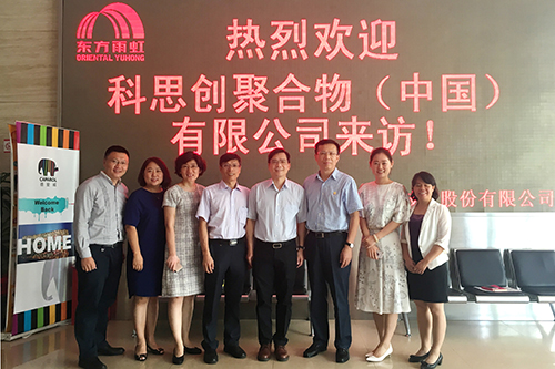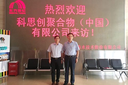 8月2日上午,科思創(chuàng)涂料、粘合劑及特殊化學品業(yè)務部亞太區(qū)高級副總裁鐘小斌先生一行專程訪問東方雨虹。東方雨虹總裁向錦明先生熱情地接待了鐘小斌先生一行,雙方就進一步合作展開深度交流。