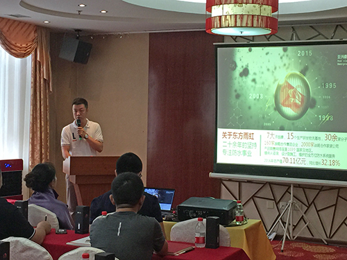 首先,吉林省總經(jīng)理王連成發(fā)表了“專注防水二十年”為主題的演講,為參會的客戶展現(xiàn)了全方面的東方雨虹;接著,東北區(qū)副總工王派以“技術(shù)創(chuàng)新,服務(wù)先行”為宗旨,展現(xiàn)了東方雨虹技術(shù)團隊的優(yōu)勢;最后,由東北事業(yè)部總經(jīng)理張宏濤詳細解讀了合伙人的政策方針,并對與會客戶提出的問題進行了一一解答。