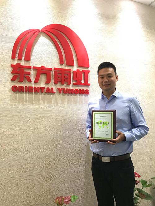 在上午舉行的朗詩綠建論壇上,韓晨磊向在座嘉賓分享了針對朗詩綠色建筑特別開發的“零甲醛室內防水涂料”,從標準的制定、產品的研發、進口供應商配合、現代化工廠生產、專業的物流配送系統等五方面進行了介紹。東方雨虹為朗詩的“零甲醛”標準項目提供了按時保質的產品服務,得到了朗詩集團高度評價。 在接下來的感謝優秀合作伙伴環節,東方雨虹被授予“優秀供應商”稱號,朗詩地產產品質量中心結構總工程師宋新風先生和朗詩綠建研發基地總經理王長山先生對東方雨虹的產品質量以及配套的服務體系給予了肯定和贊揚。