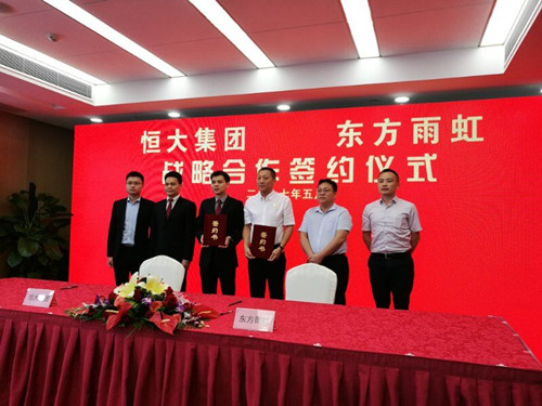 5月22日下午,恒大集團材料設備供應商戰略簽約儀式在廣州恒大中心舉行。東方雨虹與恒大集團正式簽署戰略合作協議。