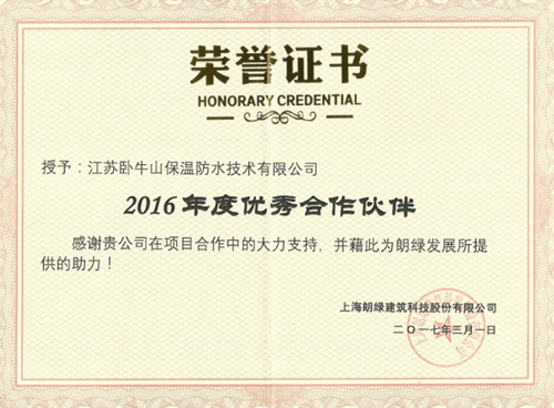 臥牛山榮獲朗綠建筑科技“2016年度優秀合作伙伴”
