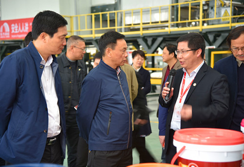 岳陽(yáng)東方雨虹廠長(zhǎng)向鋒帶領(lǐng)考察組參觀了生產(chǎn)基地水性涂料車(chē)間和高分子卷材車(chē)間,詳細(xì)匯報(bào)了東方雨虹及岳陽(yáng)生產(chǎn)基地的總體經(jīng)營(yíng)情況,并講解了公司主要產(chǎn)品的生產(chǎn)工藝、產(chǎn)品優(yōu)勢(shì)及重大工程應(yīng)用情況。
