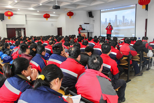 早上七點,唐山生產(chǎn)基地廠長馬到原在辦公樓前迎接所有員工,給大家拜年并發(fā)放開年紅包。八點,全體員工集合,進行農(nóng)歷新年第一次升旗儀式,由馬到原和各部門主管級以上人員簽訂2017年度安全責任狀,組織全體員工進行安全宣誓,隨后,全體人員進行了2個小時的安全培訓。