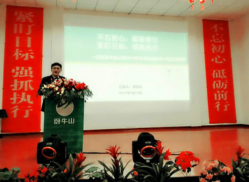 會(huì)議首先由臥牛山公司董事長、總經(jīng)理劉志榮作“不忘初心、砥礪前行,緊盯目標(biāo)、強(qiáng)抓執(zhí)行”主題報(bào)告。他從銷售、工程管理、市場、人力資源、技術(shù)、財(cái)務(wù)風(fēng)險(xiǎn)等板塊全面深刻地回顧和分析了2016年公司整體經(jīng)營情況及存在的問題,為各個(gè)板塊明確了2017年的工作方向及實(shí)施舉措。