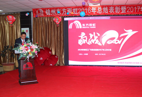 1月19日上午,東方雨虹錦州生產(chǎn)基地舉行2016年度總結表彰暨2017年度工作部署大會,當?shù)卣I導、全體員工及部分家屬齊聚一堂,分享工作經(jīng)驗,表彰先進,齊頭并進,贏戰(zhàn)2017。