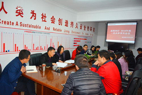 12月13日上午,風行防水組織召開2016年質量、環境、職業健康安全管理體系第二次內審首次會議,旨在對公司一年來分解落實年度質量、環境、職業健康安全管理目標的完成情況及過程管控進行全覆蓋、全要素內審,以持續改進和增強體系的運行效果,不斷促進公司管理水平的提升。風行防水副總經理劉光宗主持會議,由公司高管、內審員組成的審核組共計11人參與了會議。