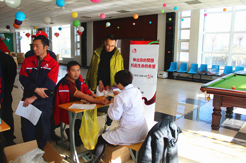 東方雨虹錦州生產基地員工正在獻血