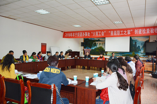 11月1日下午,昆明市五華區(qū)總工會常務(wù)副主席張麗萍、職工俱樂部主任熊昆華、豐寧街道總工會副主席楊忠國一行來到風(fēng)行防水,組織召開五華區(qū)豐寧街道辦2016年“六有工會”、“星級職工之家”創(chuàng)建檢查驗(yàn)收會,轄區(qū)內(nèi)有關(guān)企業(yè)共計(jì)16家前來參會。