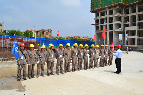為提高防水工程施工質量和施工現場管理水平,解決因施工粗放而導致建筑滲漏率居高不下的問題,切實打造優質防水工程,東方雨虹決心在全國推行防水標準化施工服務體系。4月25日,東方雨虹工程渠道事業部與南寧東方雨虹防水工程有限公司共同組織舉辦了防水示范工地觀摩交流活動----東方雨虹嘉和城白鷺郡南山項目防水標準化施工推介會。 嘉和城項目施工現場警戒線、標示牌、司旗等一應俱全,工人們統一著裝,以良好的風貌列隊進場,嚴格執行標準化施工的要求。