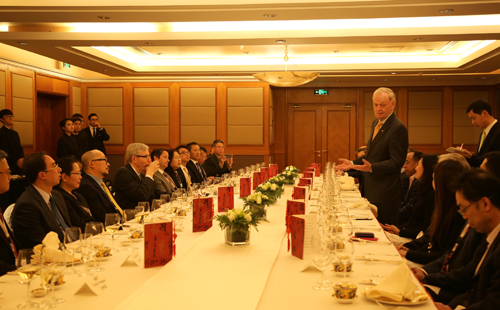大成律師事務(wù)所合伙人邵威(左一)、加拿大前總理克雷蒂安(左四)與中國(guó)企業(yè)代表