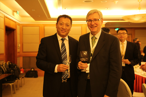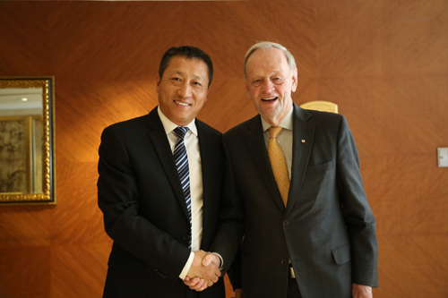 東方雨虹防水集團(tuán)總裁劉斌(左)與加拿大前總理克雷蒂安(右)