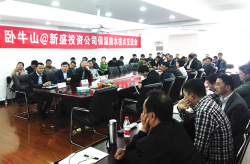 2016年4月9日上午,江蘇臥牛山公司走進(jìn)徐州新盛投資公司,舉辦了一場建筑外墻保溫、防水技術(shù)交流會(huì),新盛投資公司相關(guān)部門、各分子公司及各項(xiàng)目部建設(shè)總包方、監(jiān)理單位共計(jì)60余人出席了本次交流會(huì),共同探討建筑外墻保溫、防水施工的各項(xiàng)要求。