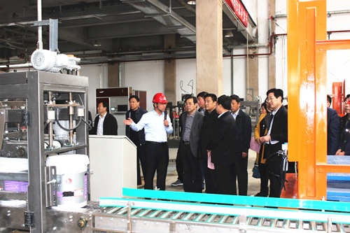 東方雨虹咸陽生產(chǎn)基地廠長劉曉俊向考察組一行介紹了咸陽生產(chǎn)基地的建設進度,并帶領(lǐng)考察組參觀了涂料生產(chǎn)車間,考察組對咸陽生產(chǎn)基地的建設情況及規(guī)范化管理給予了高度評價。