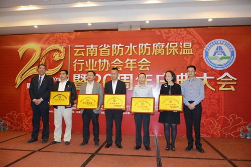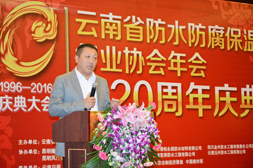 4月13日,云南省防水防腐保溫行業(yè)協(xié)會(huì)2015年年會(huì)暨二十周年慶典大會(huì)在昆明世紀(jì)金源大酒店隆重舉行,中國(guó)建筑防水協(xié)會(huì)、云南建設(shè)廳、云南省質(zhì)量監(jiān)督局等部門領(lǐng)導(dǎo)、協(xié)會(huì)領(lǐng)導(dǎo)及企業(yè)家共計(jì)200余人參加。