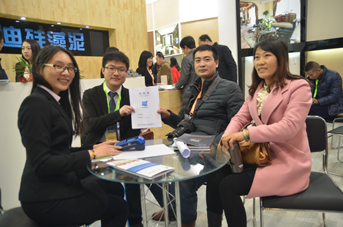 一大早,慕名前來的客戶就擠滿了洛迪展廳,近距離觀看和感受硅藻泥產品的肌理、質感。洛迪硅藻泥產品因其吸附分解甲醛、凈化空氣、調溫調濕、防火阻燃、吸音降噪等生態環保性能以及各有千秋的樣式、優越的品質、獨特的藝術美感和表現力吸引了不少觀眾流連。 展會剛開館就成功簽訂了兩家客戶,可謂是旗開得勝,也為此次展會奠定了成功基調。展會第一天,現場不斷傳來簽約成功的喜訊。