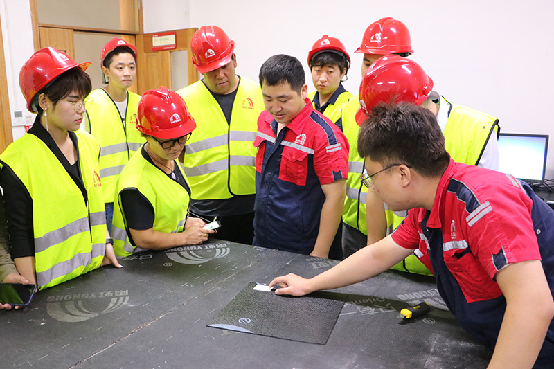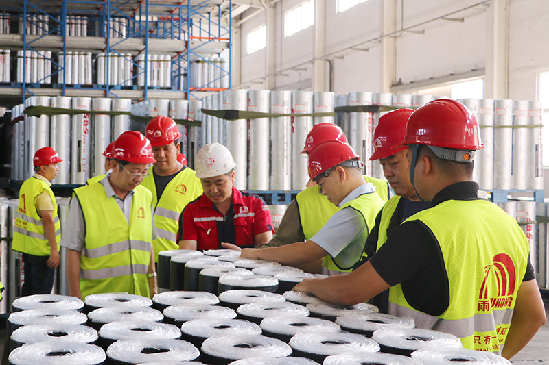 在東方雨虹唐山生產(chǎn)基地瀝青材料主任工藝師萬東永、東方雨虹工建集團(tuán)渠道天津區(qū)域經(jīng)理李雪鵬的帶領(lǐng)下,合伙人先后參觀了唐山東方雨虹的卷材生產(chǎn)車間,涂料生產(chǎn)車間和質(zhì)量檢測中心,從原材料進(jìn)廠質(zhì)量把控、產(chǎn)品的生產(chǎn)過程、成品出廠的層層質(zhì)量檢測等生產(chǎn)一線的實(shí)際情況有了全面認(rèn)知。