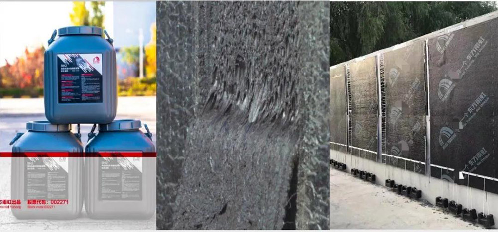 BH2高粘抗滑水性橡膠瀝青防水涂料是一款利用高分子改性瀝青技術制備的單組份防水涂料。具有水性涂料的環保型和施工便利性的優點,同時因添加多種特殊助劑,具有固化后粘結力強、延伸率大的特點,特別適用于地下立墻與卷材復合使用,最宜采用機械化噴涂施工。
