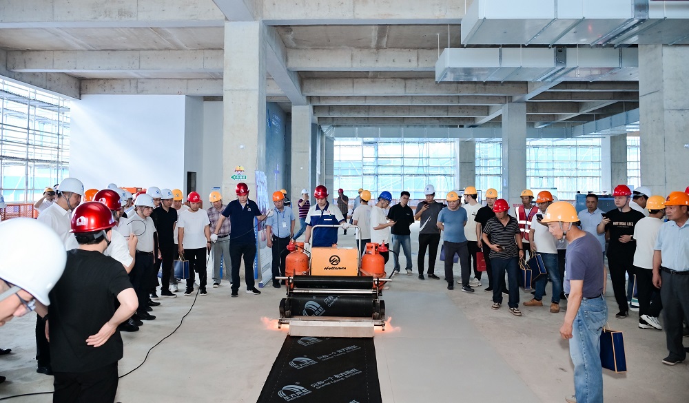 浙江東方雨虹現場分享建筑防水、建筑涂料、砂漿粉料、土工防滲、樓板隔聲、混凝土防腐、金屬涂裝、非織造布、運動地坪、雨虹管業(yè)等 “一超九強”產品、智能型卷材攤鋪車坦途-100的優(yōu)異性能和應用場景,并展示改性瀝青涂料熱熔施工的標準化操作。