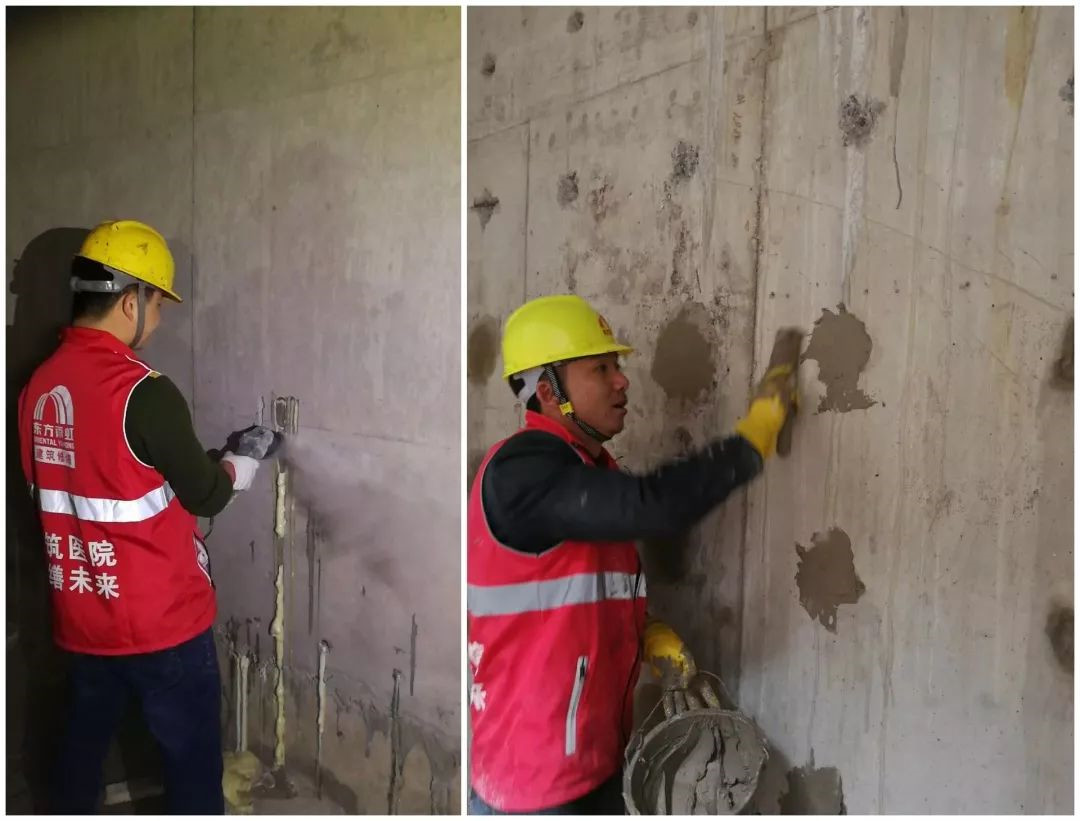 背防作業(yè)之后,待抗?jié)B1#完全起強(qiáng)度后,需要打磨作業(yè),恢復(fù)表面的平整度,為后續(xù)的飾面處理做好準(zhǔn)備。